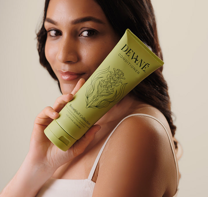 Devane Conditioner is a luxurious fusion of Ayurvedic wisdom and modern science. It’s crafted with nourishing ingredients like peptides, biotin, mango seed butter, and Ayurvedic herbs to restore softness, visibly improve hair resilience, and seal in moisture—without weighing your hair down.