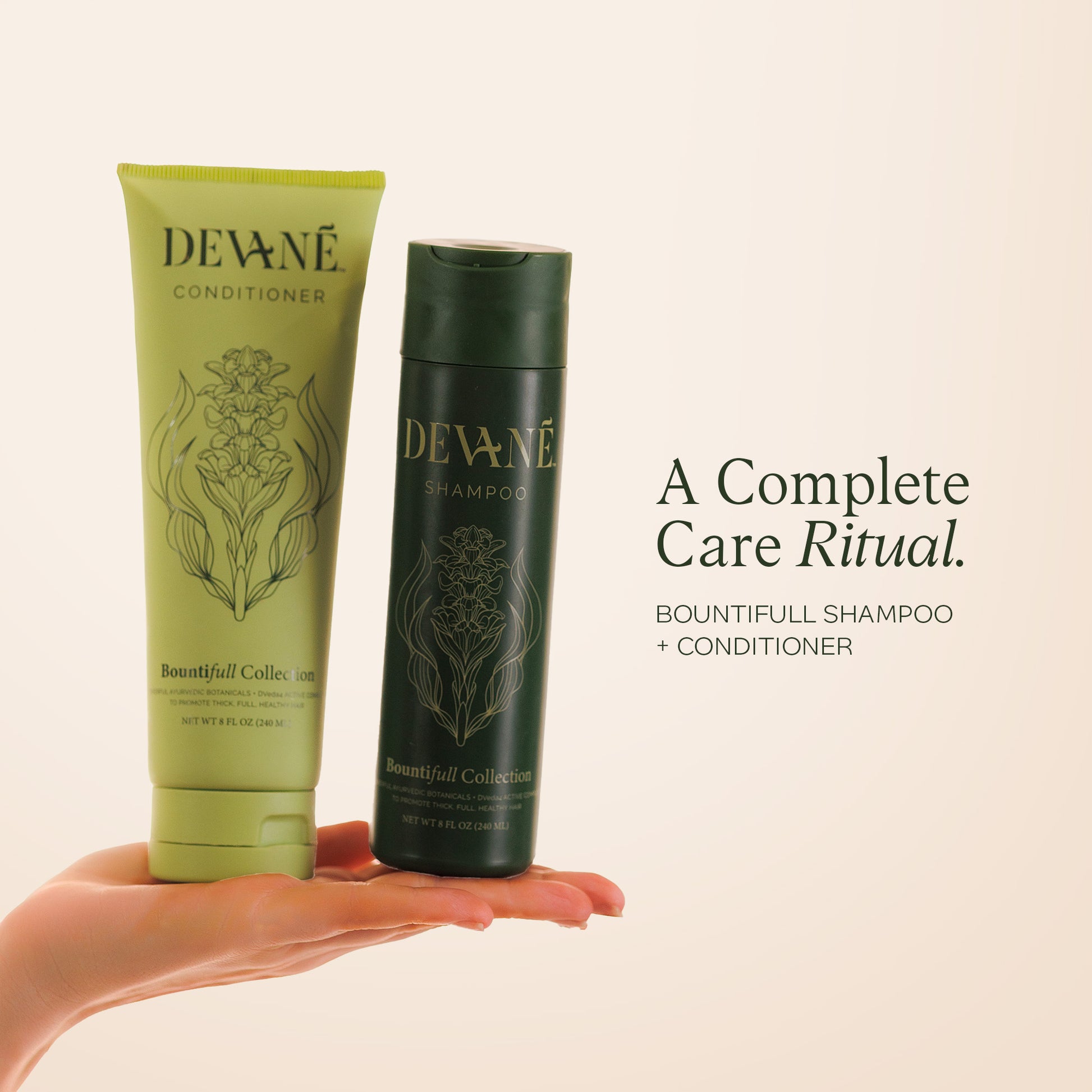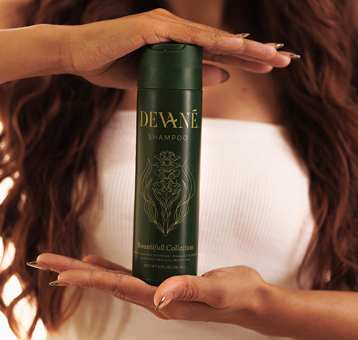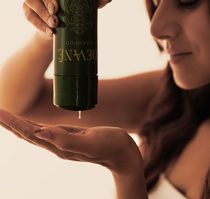Devane Shampoo blends traditional Ayurvedic herbs with modern bio-actives like peptides and biotin. It gently cleanses while supporting scalp balance and promoting healthier-looking strands from root to tip.